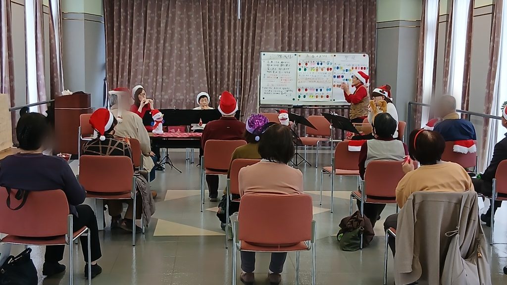 後半は皆様にハンドベルや鈴を配っていただき、ジングルベルなどクリスマスにちなんだ