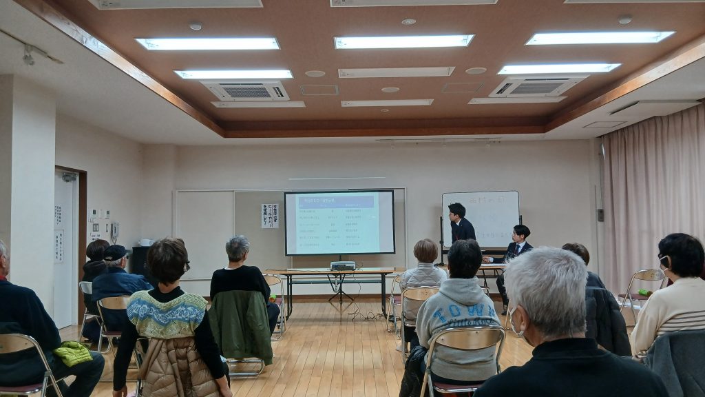 健康体操で身体を動かし、その後に金融知識を深めるという流れにより、