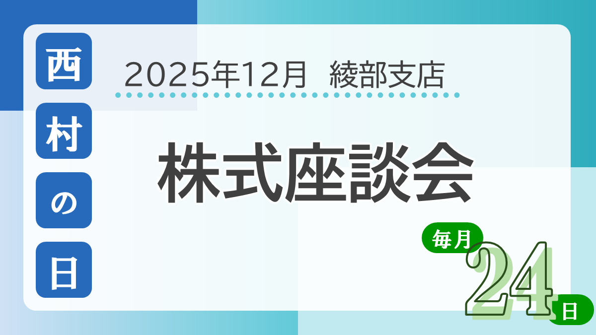 12月の綾部支店西村の日は「株式座談会」を開催いたします。 HPからのお申し込みはこちら