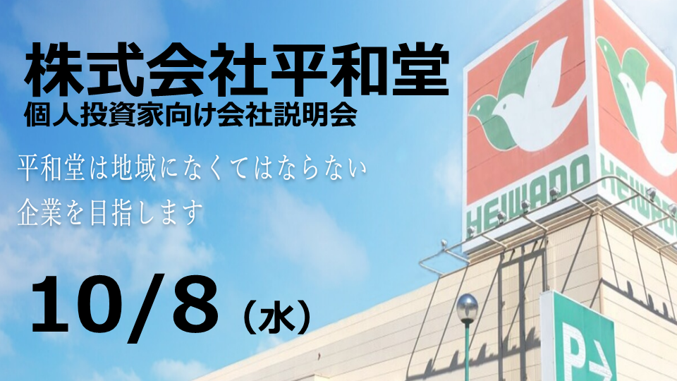 10月8日(水)『株式会社平和堂(証券コード:8276)個人投資家向け会社説明会』を開催予定です。