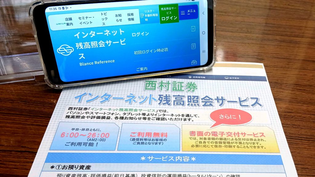 当社の「残高照会サービス」では、パソコンやスマートフォン、タブレット等から、お客様ご自身のお預かり資産の状況や過去のお取引、各種お知らせ等をいつでもご確認いただけます。